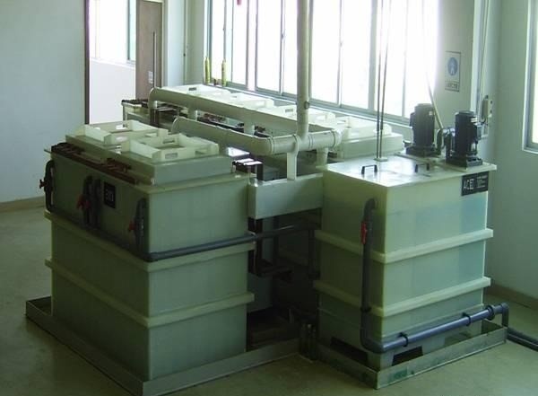 原理:利用陽極還原反應使金屬析出,并從廢水中分離出來,從而使廢水得到凈化。此裝置采用特殊設計,陰極效率高,可對銅、鎳等金屬離子從溶液中進行回收,還可以作為廢水處理中的電解裝置使用,如破氰、還原六價鉻等。從而回槽利用。